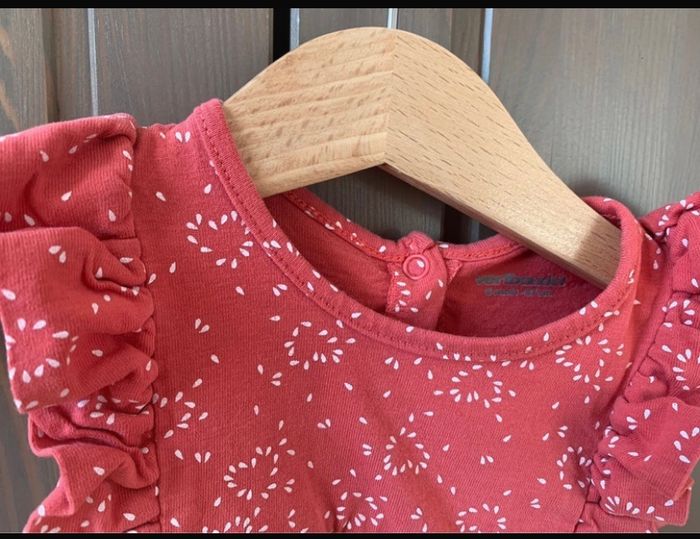 Robe petites manches à volants Très bon état Taille 6 mois/67 cm Fermeture par boutons pression dans le dos