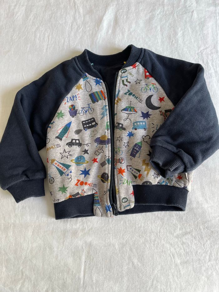 Gilet réversible bleu marine ou imprimé 2 ans Très Bon état !