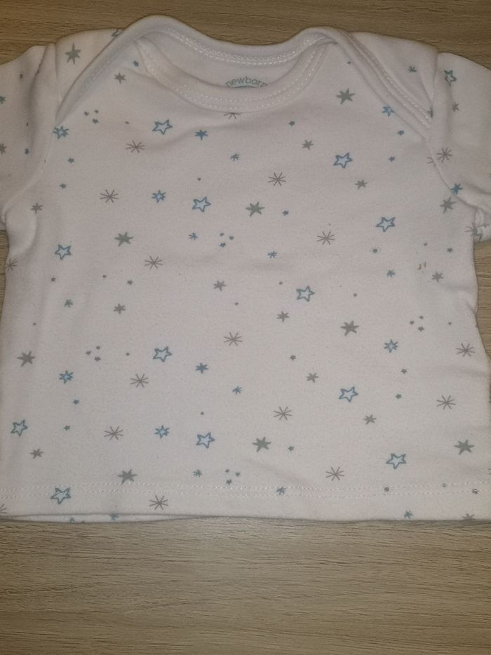 Pull manches longues Blanc avec étoiles bleues Comme neuf Porté 1 fois C&A Taille 1 mois