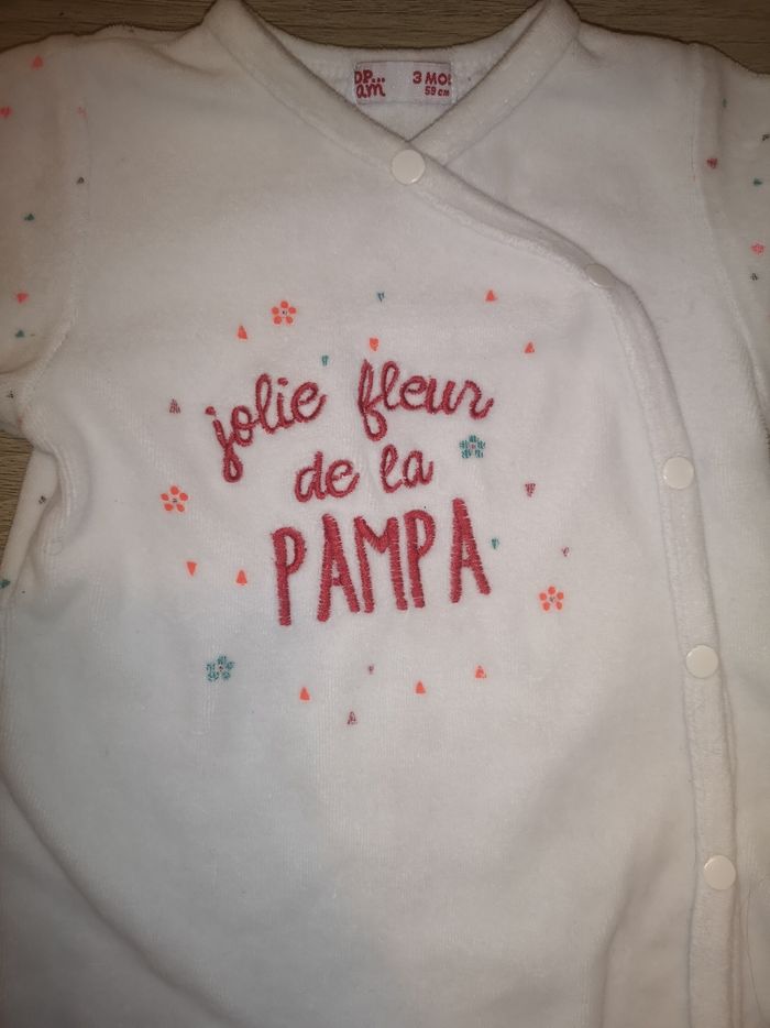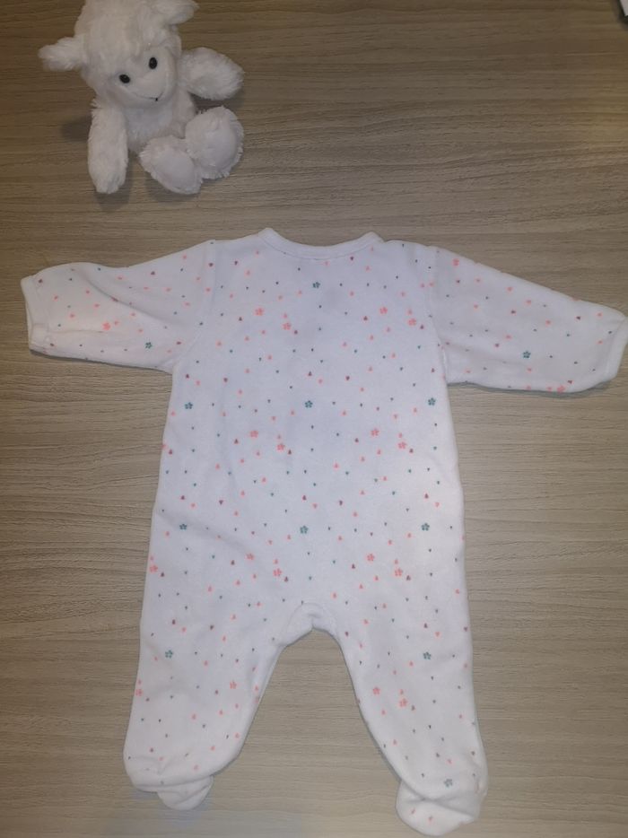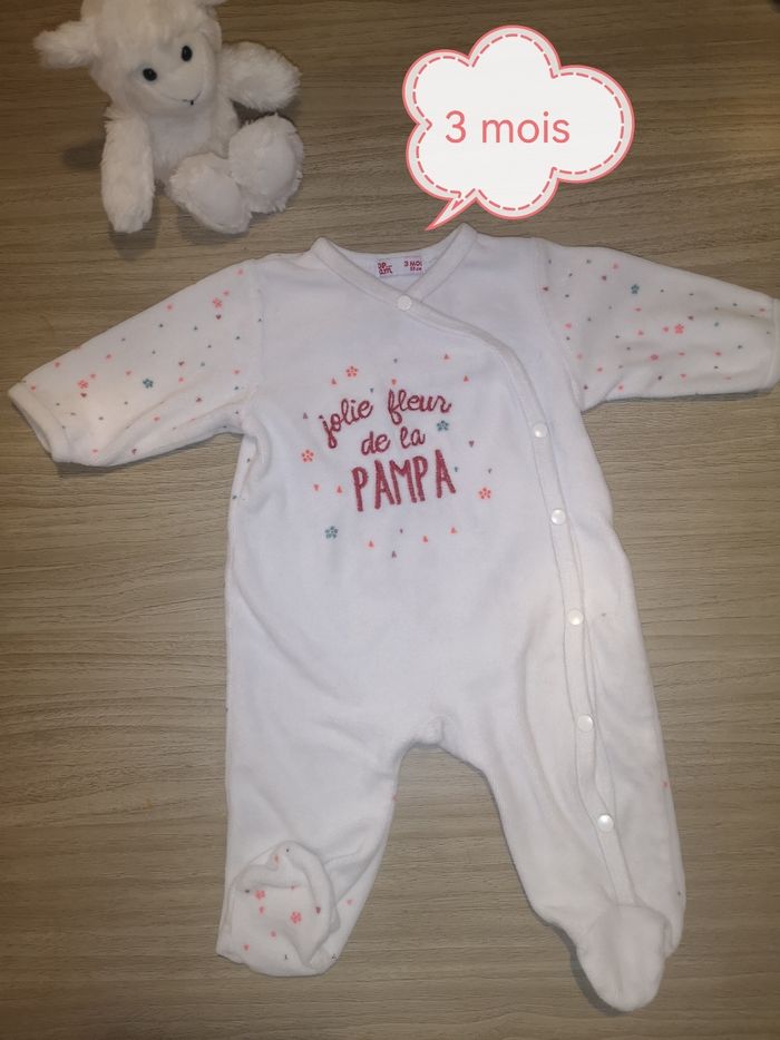 Pyjama blanc fleur de pampa En très bon état Pas tâché ni troué Taille 3 mois Du pareil au même Maison non fumeur