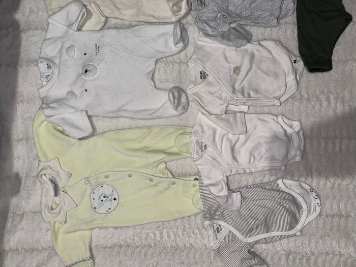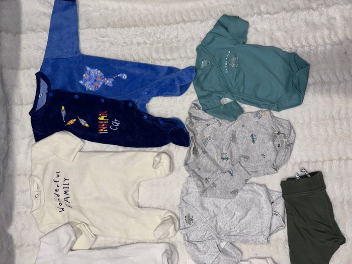 Lot 1 mois en parfait état 4 pyjamas 6 bodys ML 1 bas de jogging