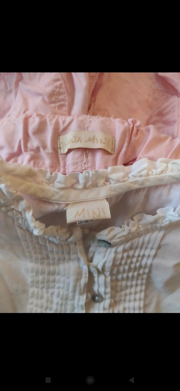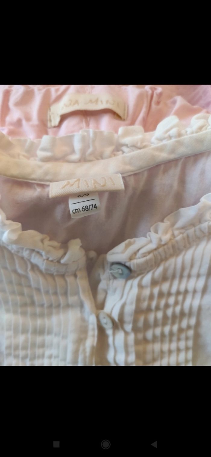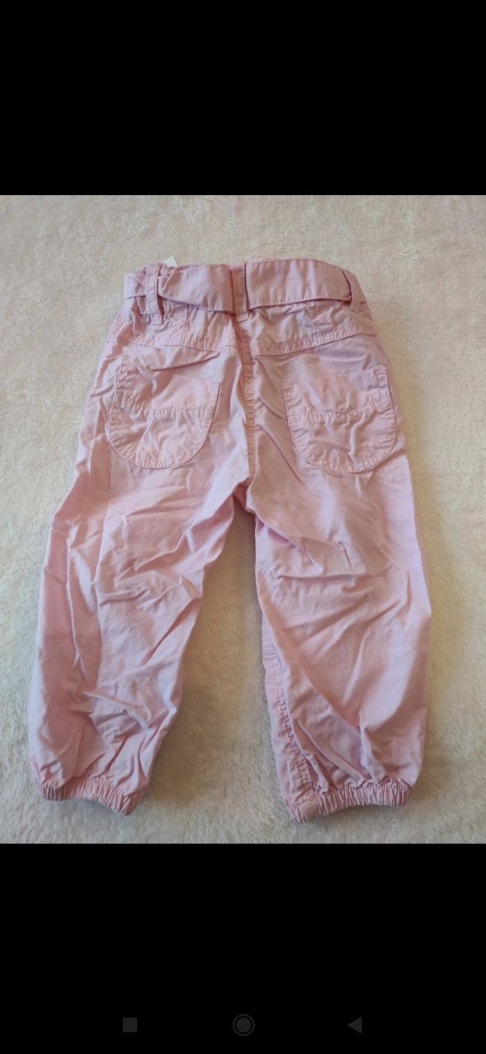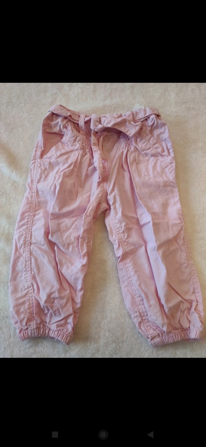 Blouse blanche sans manche. Boutons à l'avant. Un peu jauni au niveau des boutons. Pantalon rose avec ceinture. Élastique réglable à la taille.