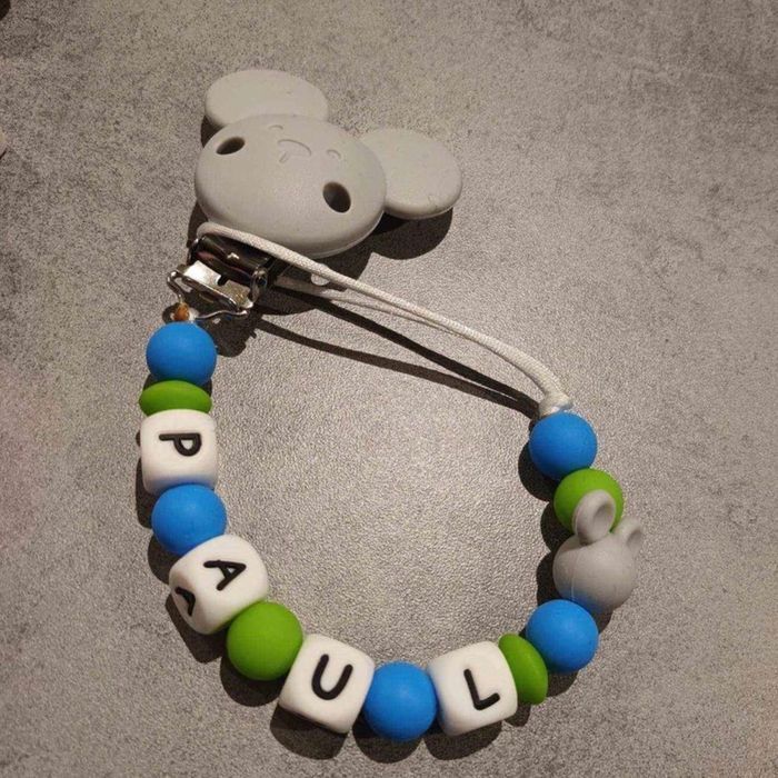 Attache tétine personnalisé en silicone ou en bois au souhait de l’acheteur . Personnalisable au choix de l’acheteur que ce soit la couleur comme le prénom ou le thème . Le fil est doublé pour plus de sécurité tout le long de l’attache tétine. N’hésitez pas à me demander et regarder mon dressing. Une photo vous sera envoyée avant l’expédition pour vous ayez un aperçu du rendu. Tous les produits sont réalisés avec du materiel spécial conçu aux bébés , enfants.