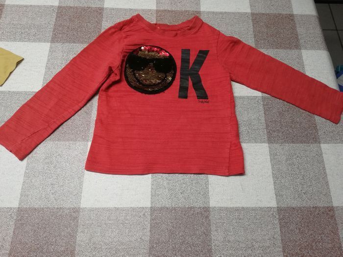 Tee shirt 3 ans rouge manches longues smiley strass réversible