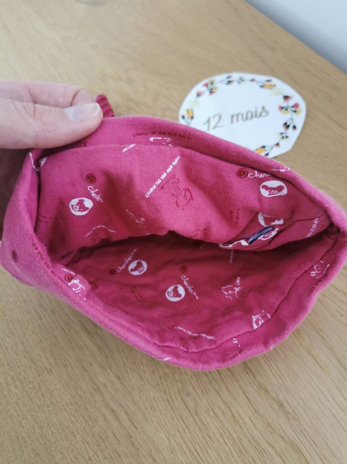 Bonnet bébé en coton dans les tons rouge. Ok pour un bébé de 6 mois et maximum 12mois.