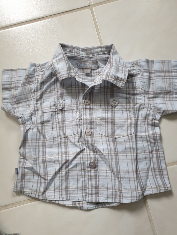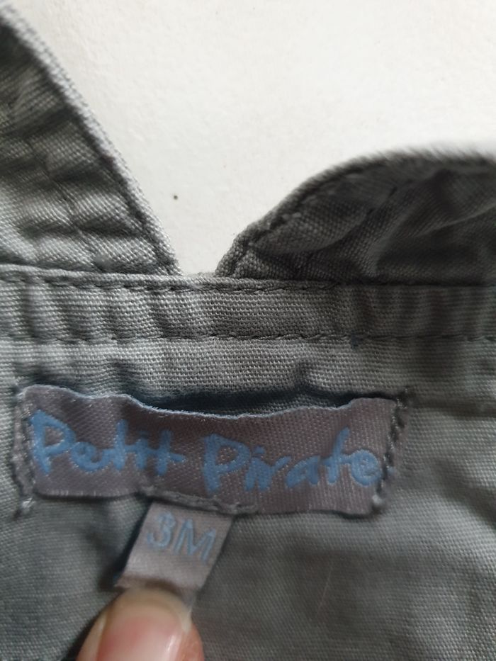 Ensemble salopette et chemise, très bon état, taille 3 mois, marque petit pirate