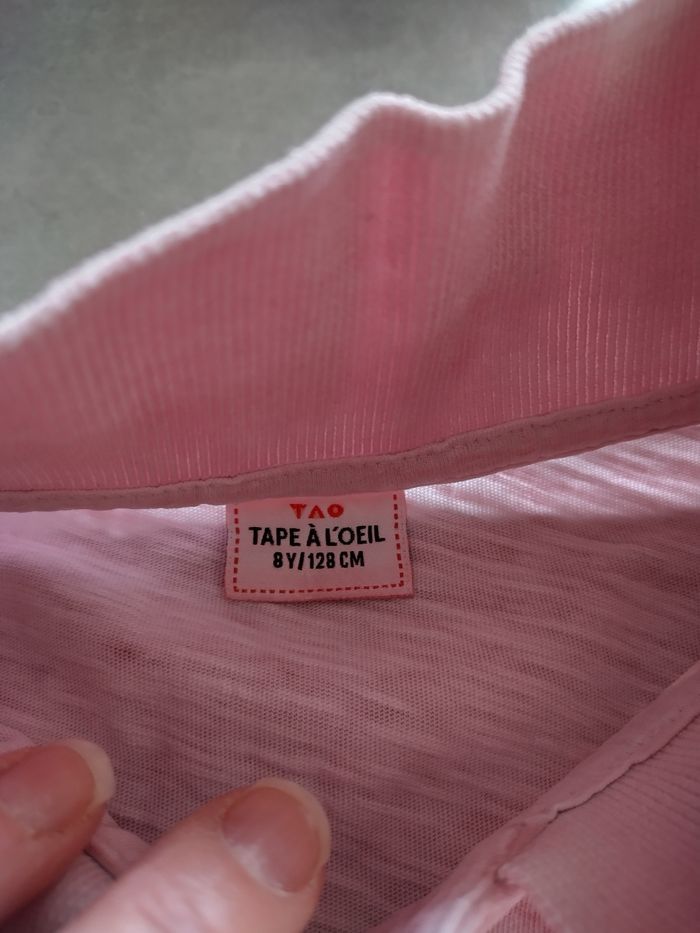 Tee shirt rose manches courtes Tao taille 8 ans Motif dos