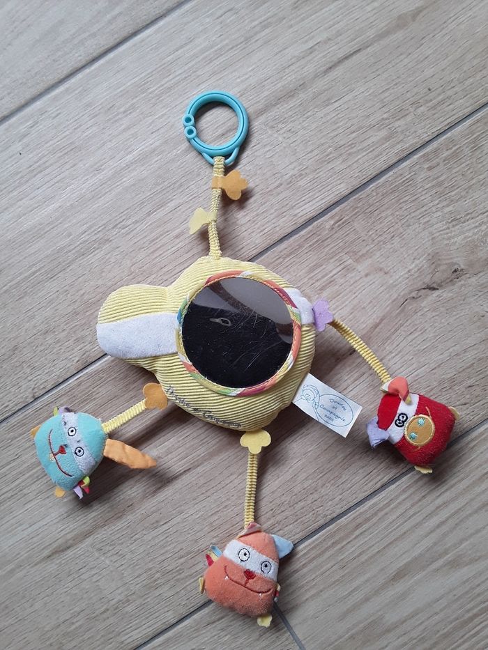 Jouet à suspendre avec miroir, hochet et pouet