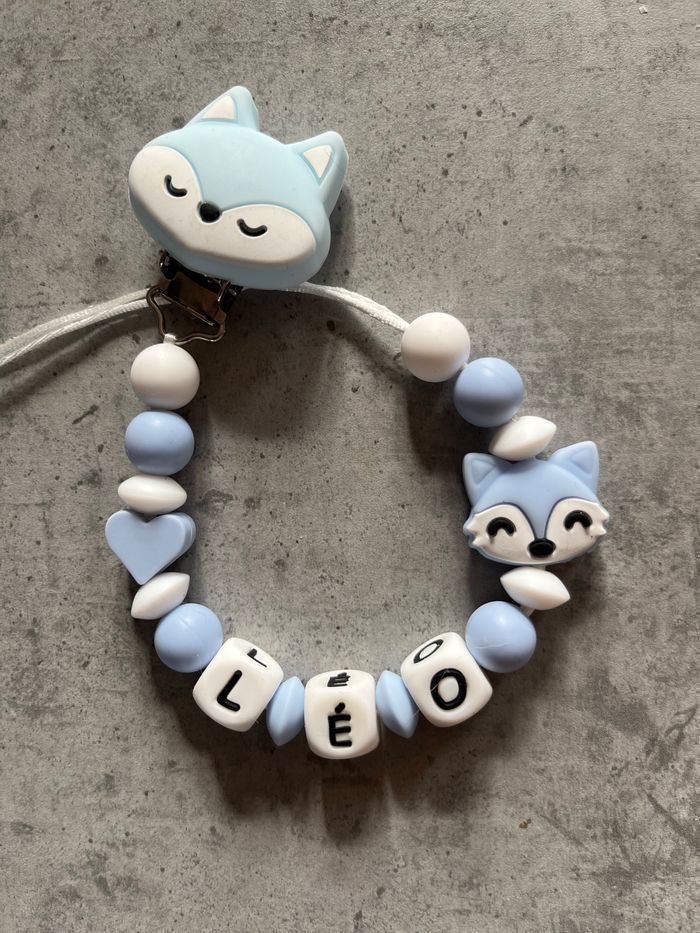 Attache tétine personnalisé en silicone ou en bois au souhait de l’acheteur . Personnalisable au choix de l’acheteur que ce soit la couleur comme le prénom ou le thème . Le fil est doublé pour plus de sécurité tout le long de l’attache tétine. N’hésitez pas à me demander et regarder mon dressing. Une photo vous sera envoyée avant l’expédition pour vous ayez un aperçu du rendu. Tous les produits sont réalisés avec du materiel spécial conçu aux bébés , enfants.