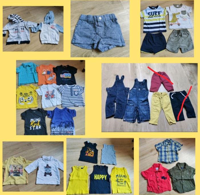 Lot en taille 3mois - 2 salopettes - 1 pantalon - 1 short - 2 ensembles tee shirt et short (1 des 2 tee shirt est taché) - 2 gilets( ils ont des taches) - 8 tee shirts manches courtes - 2 tee shirts manches longues ( 1 a une tâche) - 5 débardeurs neufs jamais portés - 3 chemises manches courtes Possibilité d achat à l unité dans mon dressing et possibilité d avoir plus de photos sur demande. #sdr0vetementsbebe #sdr0vetementsbebe3mois