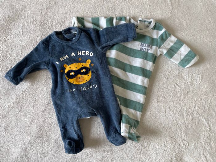 Lot de 3 pyjamas en velours de la marque KIABI - Taille 1 mois En très bon état