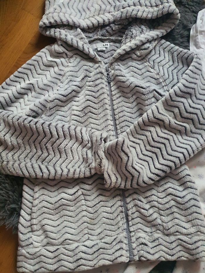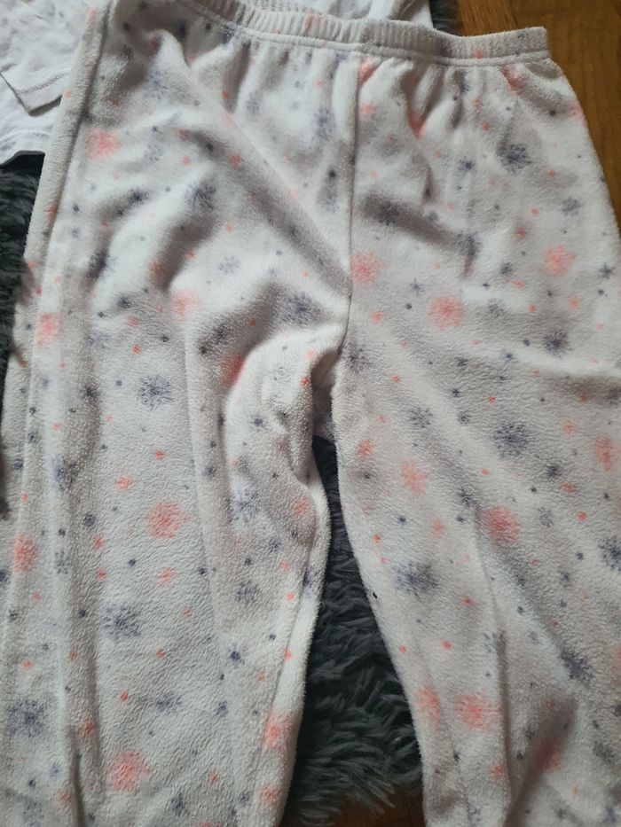 Pyjama 3 pièces de chez La Halle aux vêtements Pantalon polaire en bon état Haut avec une petite tâche Veste zippée en matière toute douce