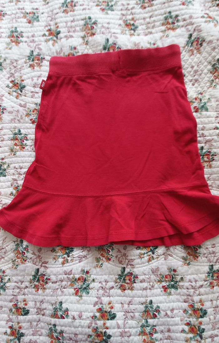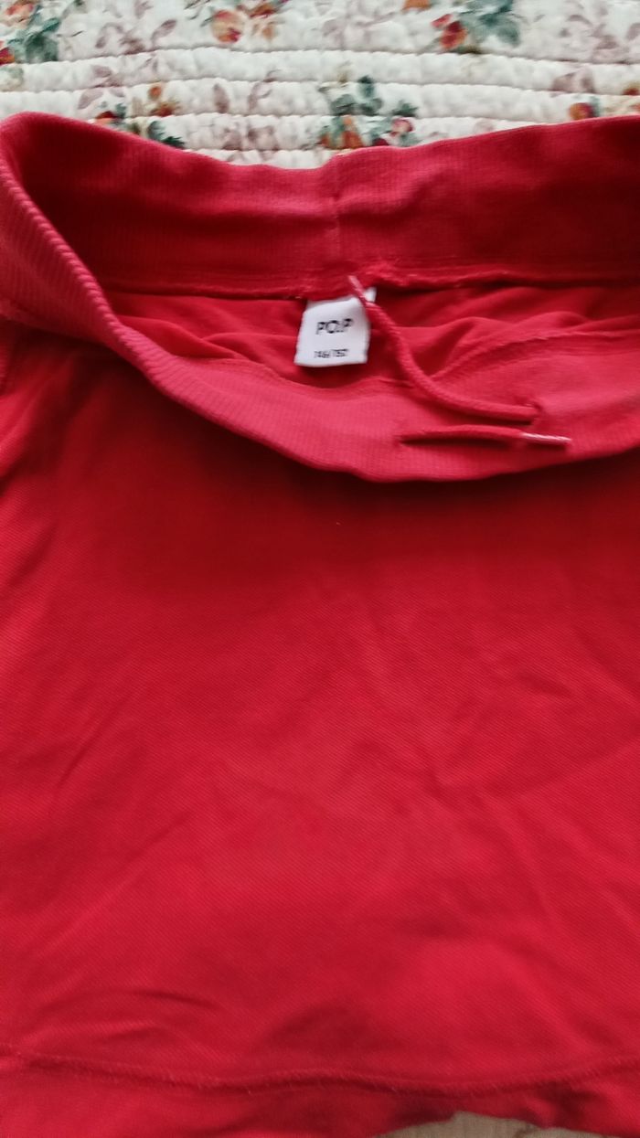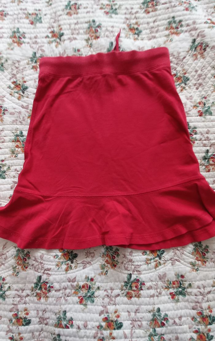 Jupe fille couleur rouge. 95% coton, 5 % lycra. Bon état (un peu décoloré). Marque Pop.
