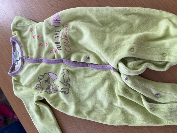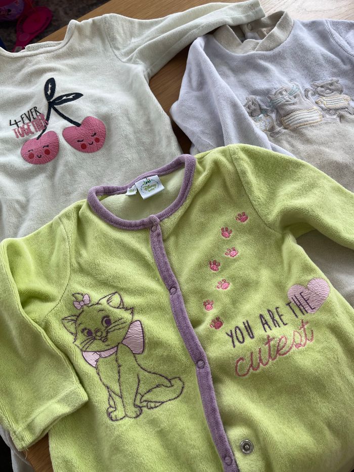 Bien portés mais restent en bon état 1 vert vif tbe aristochats Marie marque Disney 1 vert clair motif cerises marque je ne sais plus 1 blanc beige chat et souris marque canari baby celui ci est jauni MIXTES