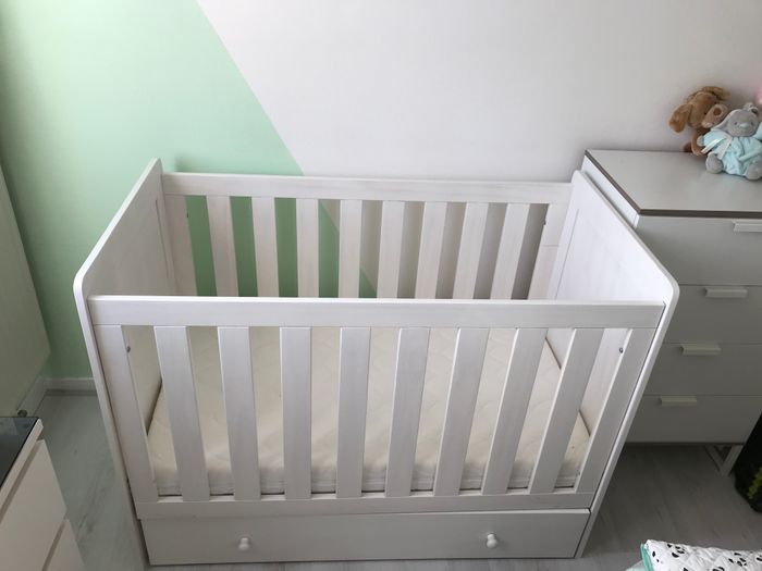 Lit réglable sur 3 hauteurs avec un tiroir, plus matelas en viscose de bambou en parfait état dimensions 60x120cm À récupérer sur place.
