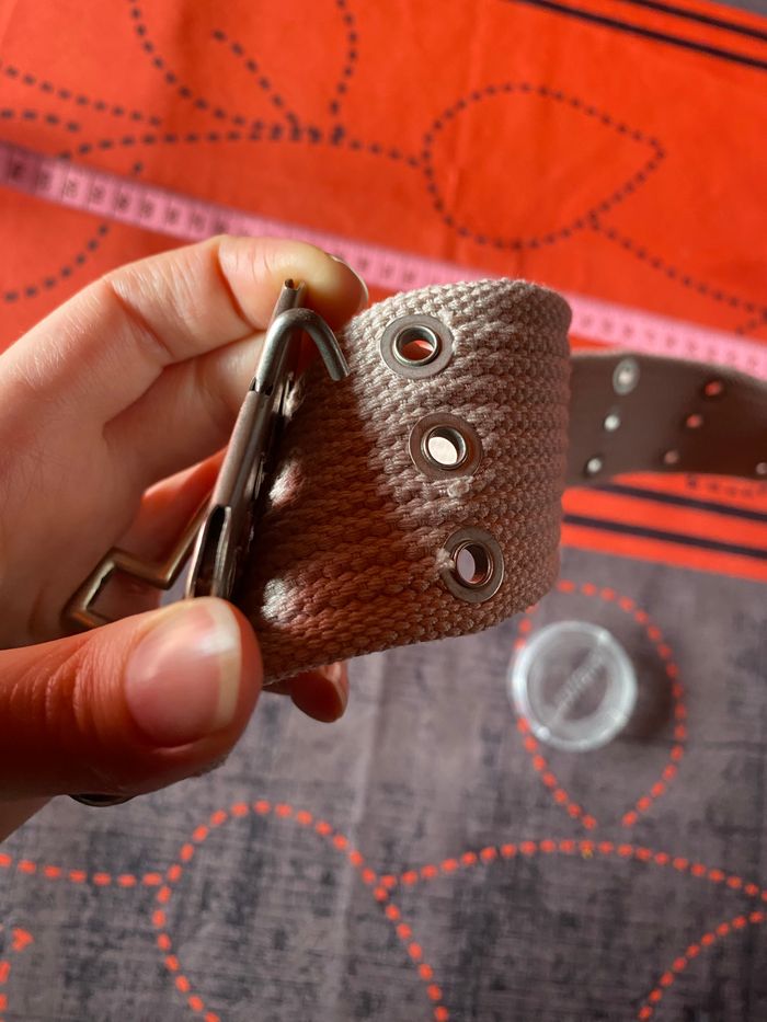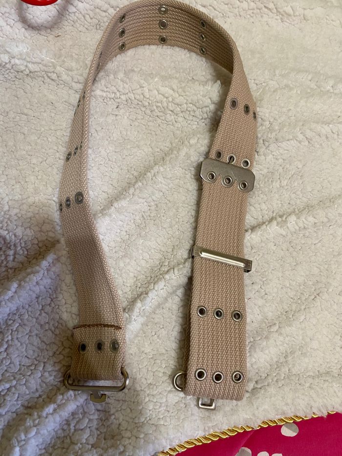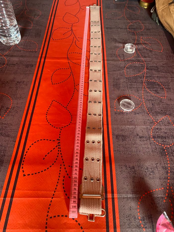 Ceinture femme rose pâle 101 cm peut se régler plus petite à l’aide du crochet et des trous.