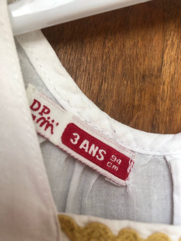 Chemisier-blouse « Du pareil au même » 3 ans (94cm) Broderies sur le devant et aux manches Fermeture éclair dans le dos