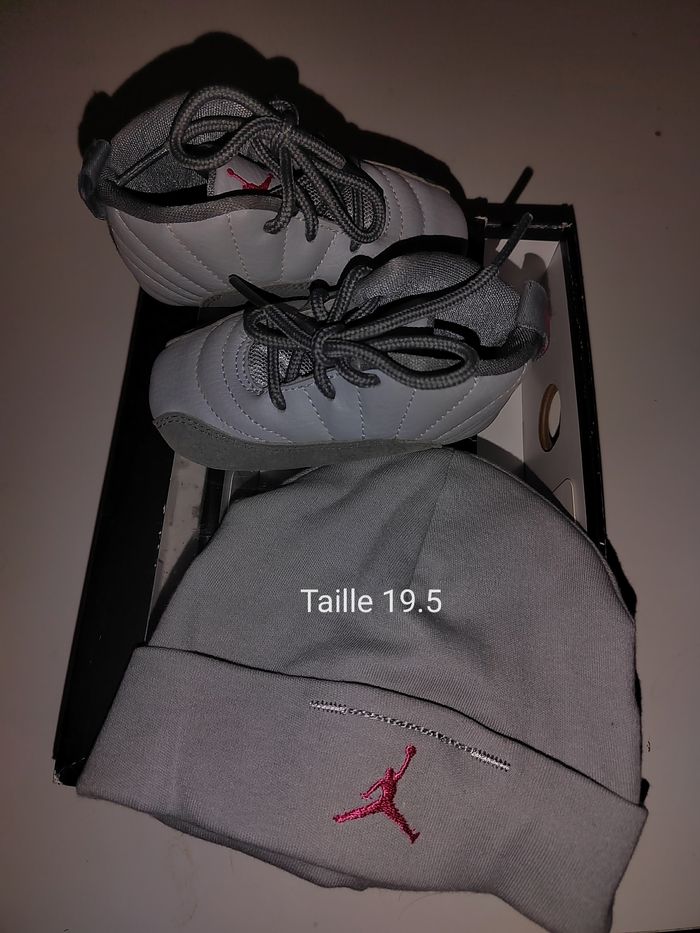 Ensemble chaussure Jordan taille 19.5 en très très bon état. Peu portée. Bonnet neuf taille unique