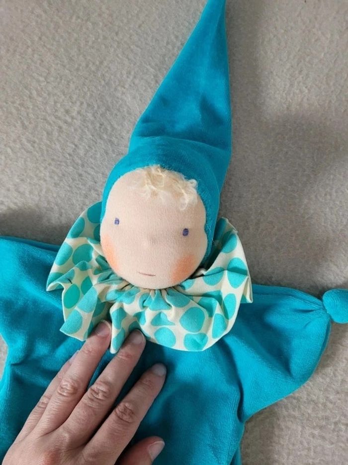 doudou poupée Dollalie poupée bleu turquoise neuve fait main