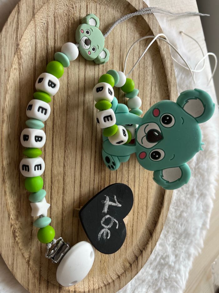 Ensemble attache tétine et anneaux de dentition
