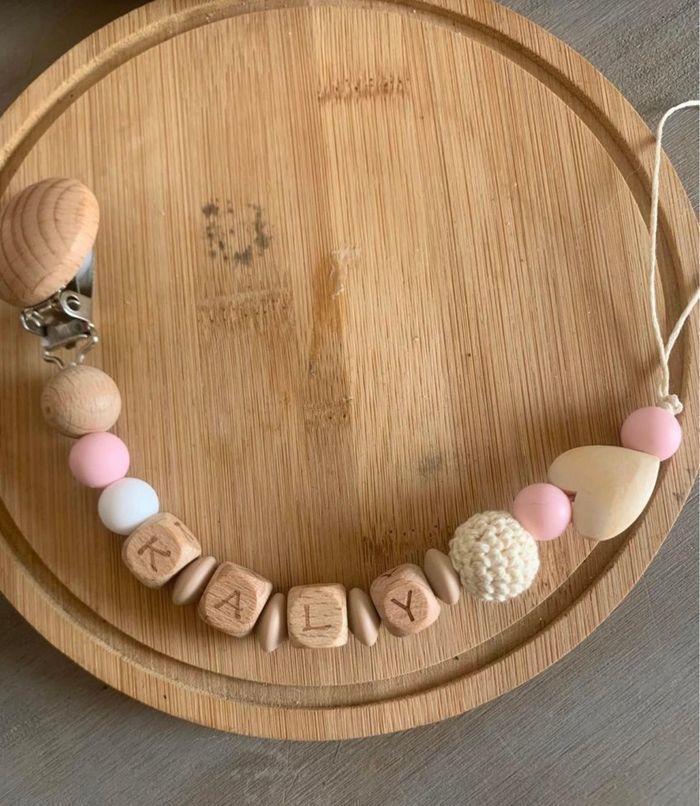 Attache tétine personnalisé au crochet ,en silicone ou en bois au souhait de l’acheteur . Personnalisable au choix de l’acheteur que ce soit la couleur comme le prénom ou le thème . Le fil est doublé pour plus de sécurité tout le long de l’attache tétine. N’hésitez pas à me demander et regarder mon dressing. Une photo vous sera envoyée avant l’expédition pour vous ayez un aperçu du rendu. Tous les produits sont réalisés avec du materiel spécial conçu aux bébés , enfants.