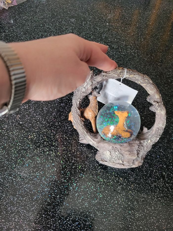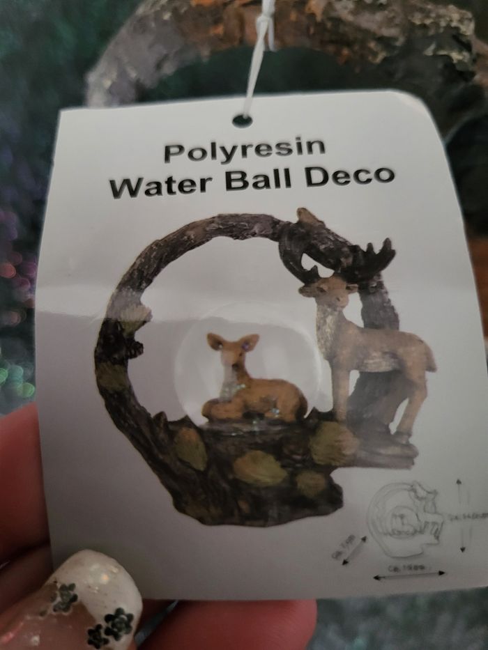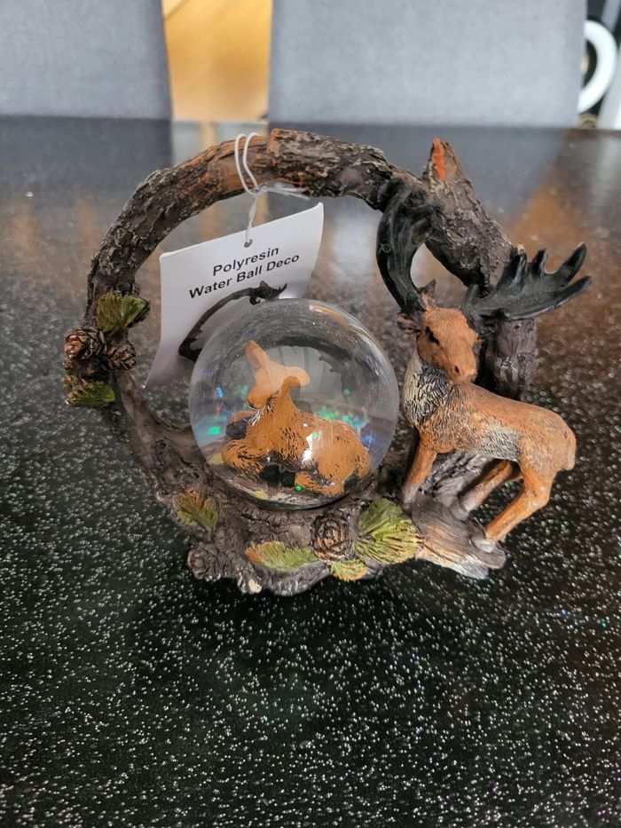 Décoration boule à eau avec paillette, modèle avec cerf et branche. Dimensions environ 15cm /15cm