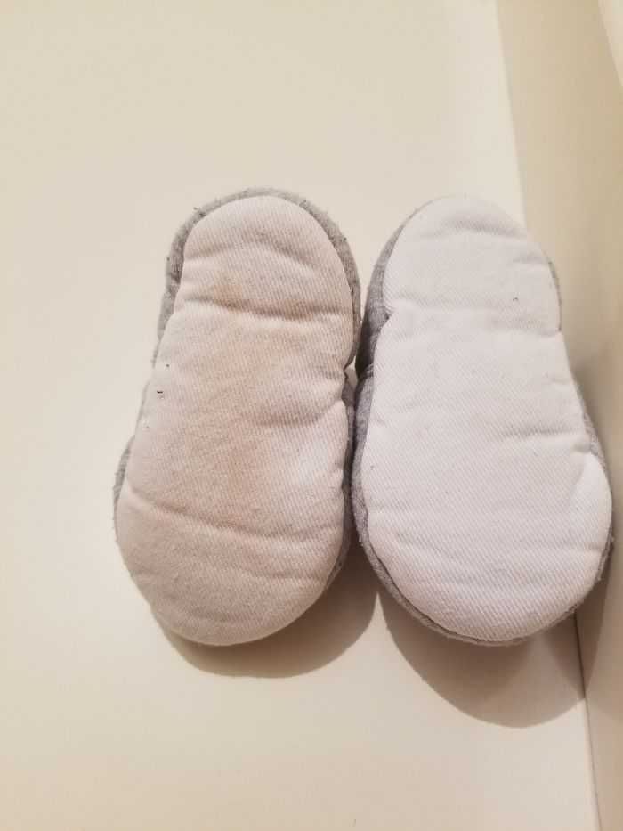 Chausson gris Naissance Mum+ dad = me Taché dessous