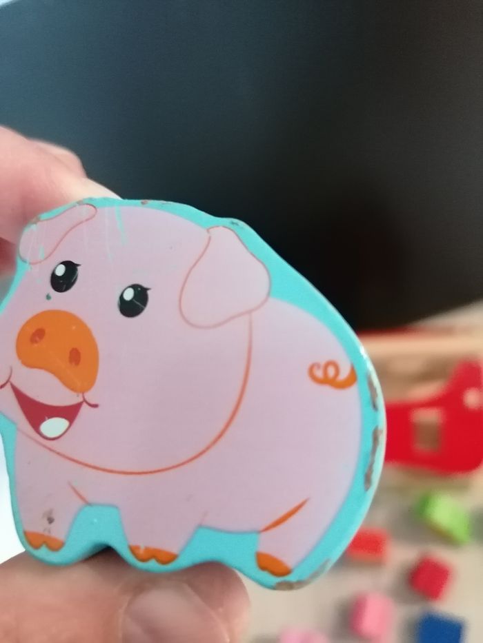 Produit de bonne qualité car en bois, quelques traces d'usure (cf. exemples sur photos). Idéal pour éveiller bébé et la motricité fine.