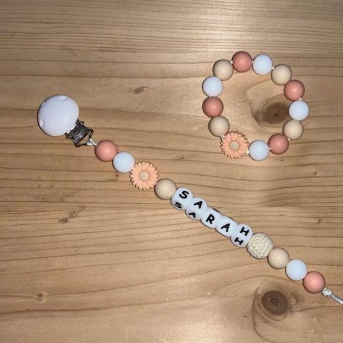 Attache tétine / anneau de dentition personnalisé en silicone ou en bois au souhait de l’acheteur . Personnalisable au choix de l’acheteur que ce soit la couleur comme le prénom ou le thème . Le fil est doublé pour plus de sécurité tout le long de l’attache tétine. N’hésitez pas à me demander et regarder mon dressing. Une photo vous sera envoyée avant l’expédition pour vous ayez un aperçu du rendu. Tous les produits sont réalisés avec du materiel spécial conçu aux bébés , enfants.