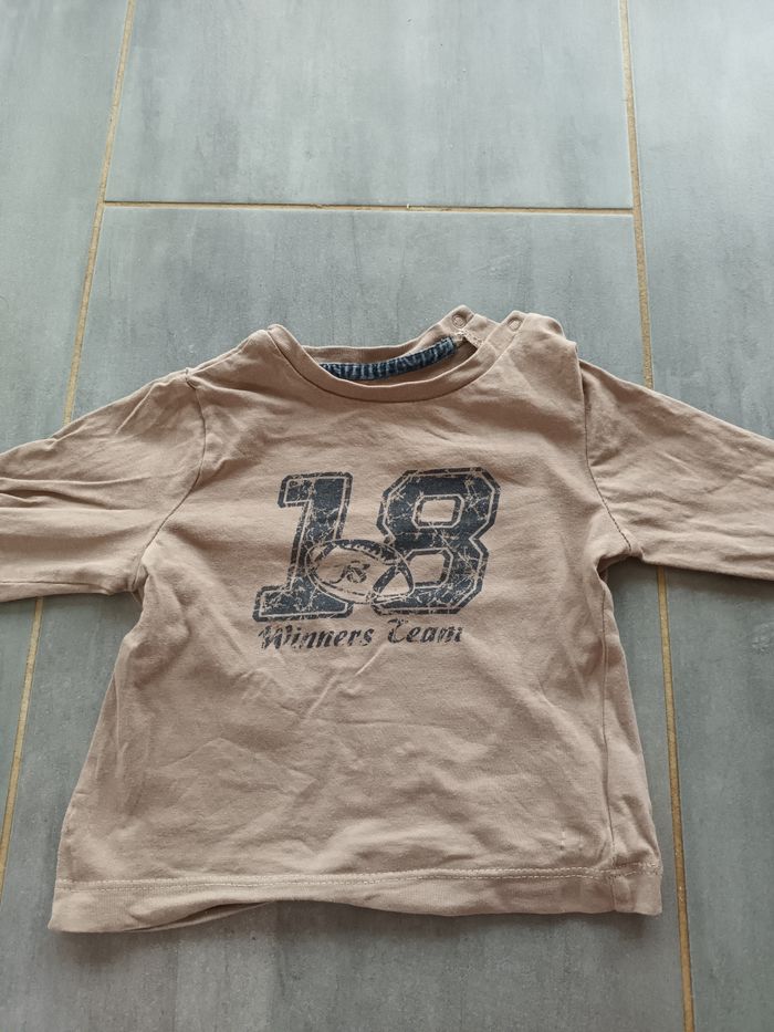 Bonjour je vend un t shirt a manche longue taille 9 mois couleur marron