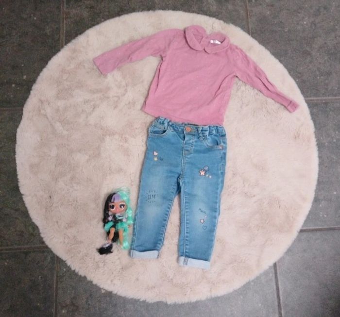 Le haut est un Lulu castagnette un peu brillant et le pantalon taille 12/18mois Primark