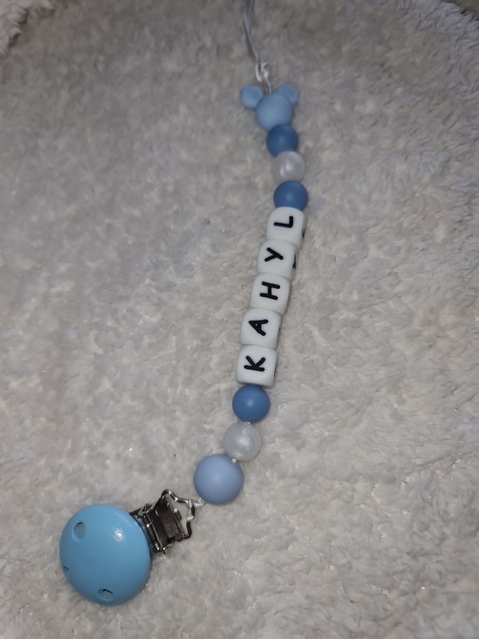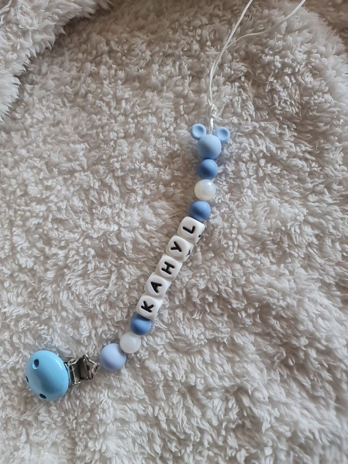 Attache tétine personnalisée Couleur et Modèl a choisir selon stock disponible 😊 Les perles sont en silicone adaptés pour bébé et conforme aux normes de l'UE. Pour la sécurité de votre enfant, toutes les attaches tétines ne dépasseront pas la taille réglementaire de 22 cm de long. (NF EN 12586 + A1) Nettoyage je vous conseille de laver à l'eau clair, ou au vinaigre uniquement ! ❌️ pas de JAVEL . N'hésitez pas à ma laisser un message avant de valider