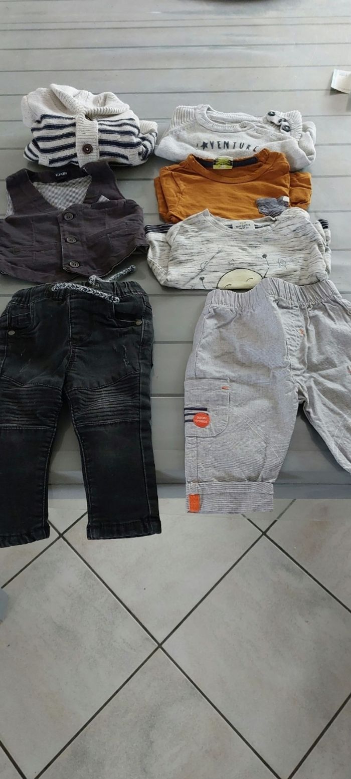 Très bon état 1 Jean noir 2 T-shirt 1pull aventure en famille 1 gilet 1bolero kiabi 1 pantalon gris clair sucre d'orge (Le jean n'est pas dans le lot)