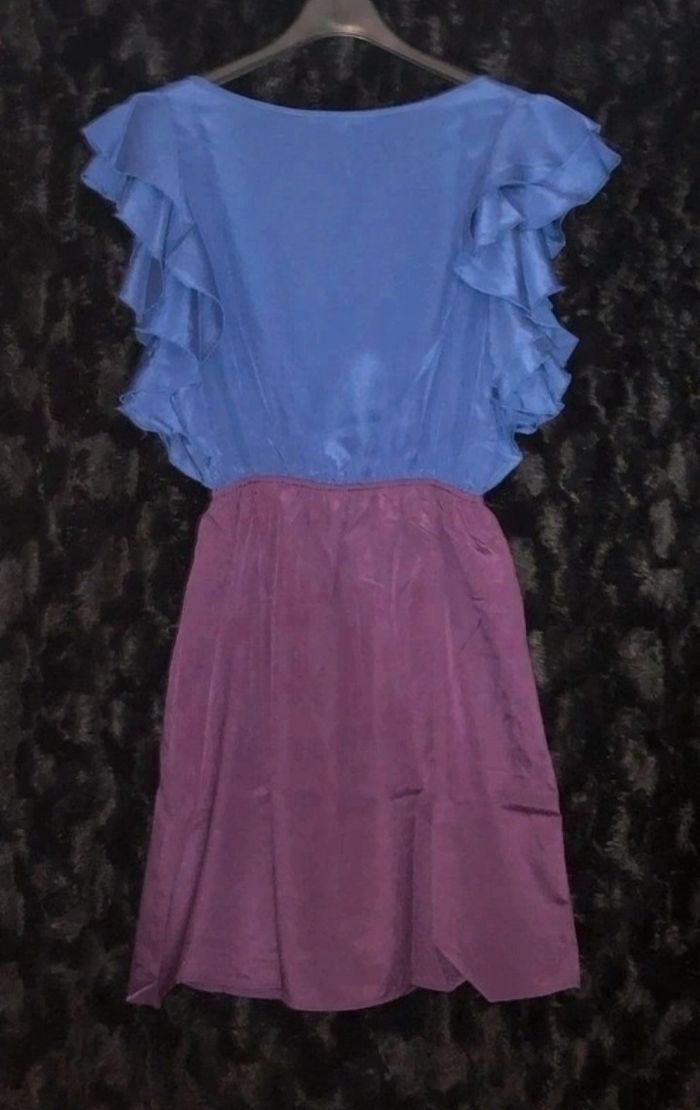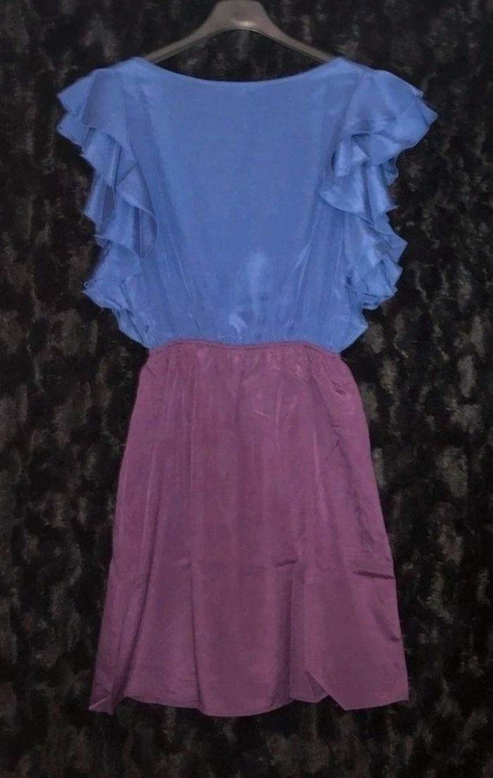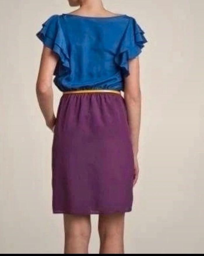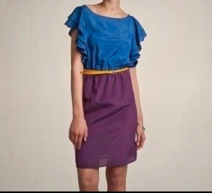 Robe courte bicolore - Manches papillon. - Elastique à la taille. - 2 poches. - Longueur 92 cm environ. - 100% polyester. - Jupe doublée 100% polyester. Taille : 38 Prix : 15 Euros  Neuve jamais portée Réf : 259800102040 - b.00