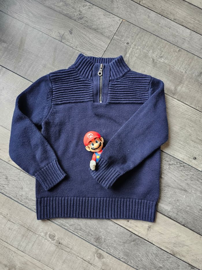 Pull bleu col zippé 3/4ans