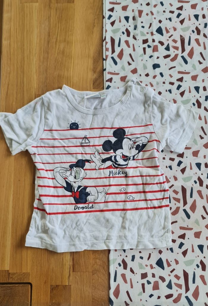 Vend t-shirt manches courtes blanc et rouge mickey. 3 ans