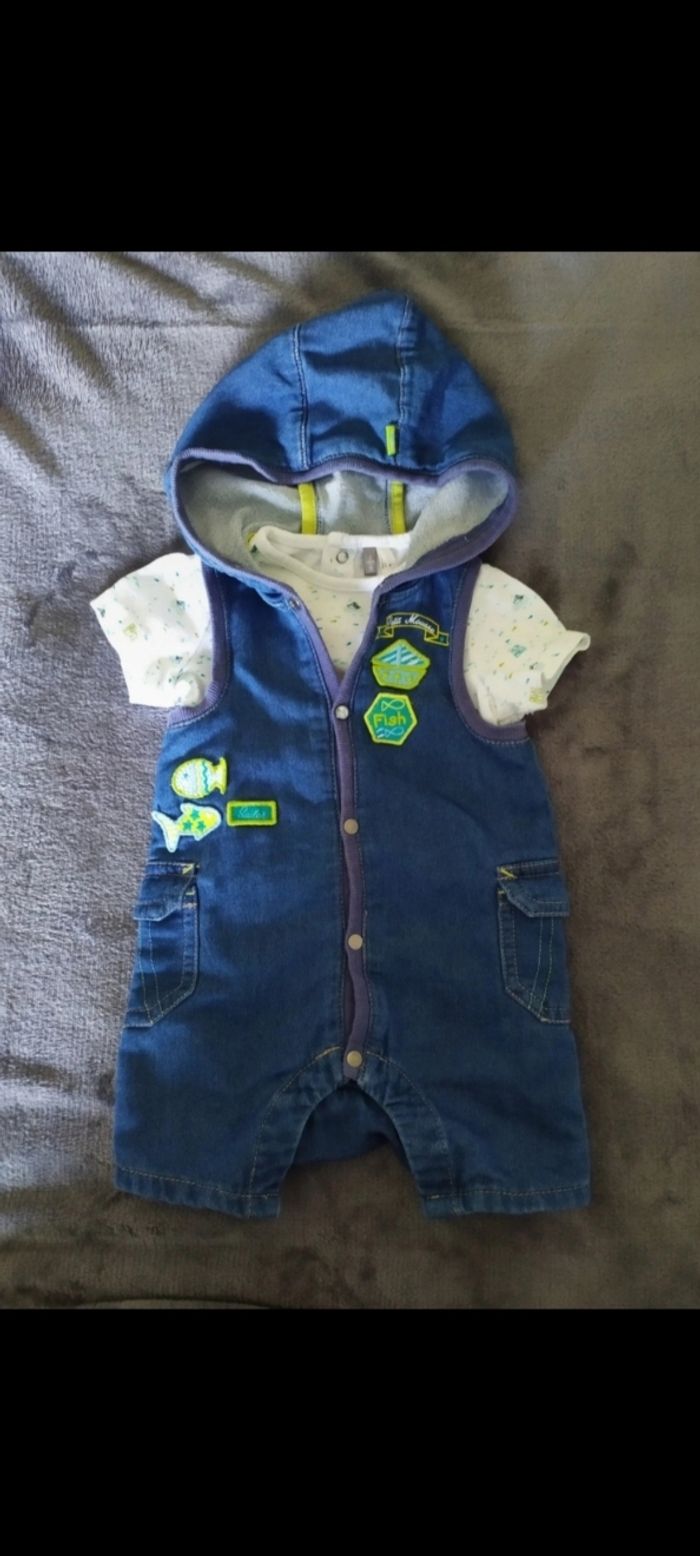Ensemble salopette jean / T.shirt 3 mois - photo numéro 1