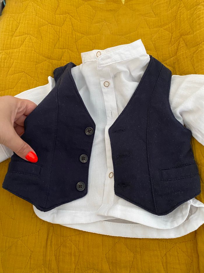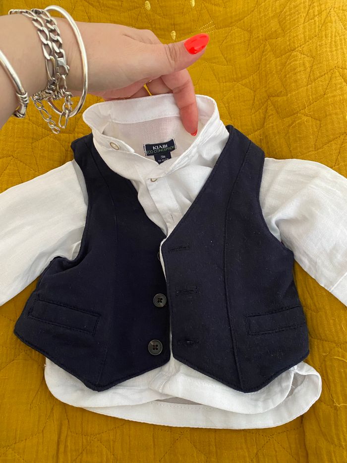 Ensemble bébé chic Chemise blanche, gilet bleu 3 mois Neuf