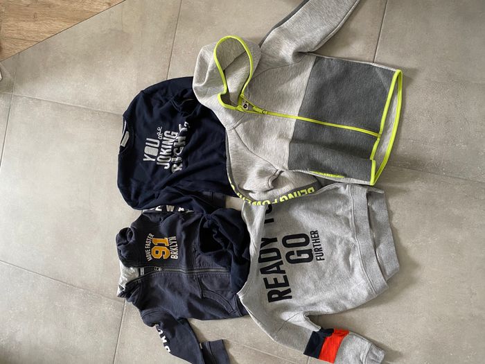 Attention prix en fonction du lot !!!!!!! Voici un lot de tee shirts, short, haut à manches longues, pulls/gilet et un jean. Tout est en taille 110-116 et dans un bon état. Peut être vendu en lot ou séparé