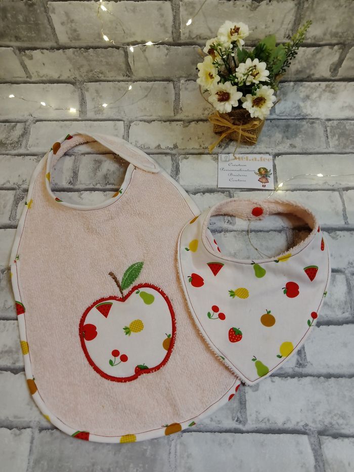 Grand format (8.8€) Bandana (3.85€) Le lot pour 12.1€ Une multitude de tissu possible Broderie prénom possible 0.5€ / p