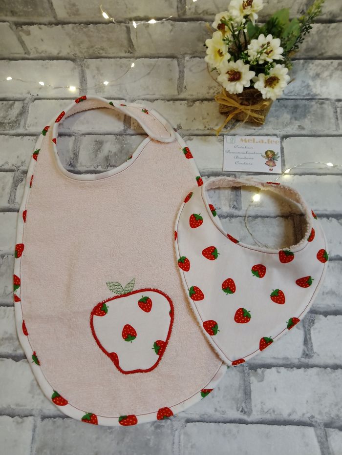 Grand format (8€) Bandana (3.5€) Le lot pour 11€ Une multitude de tissu possible Broderie prénom possible 0.5€ / p
