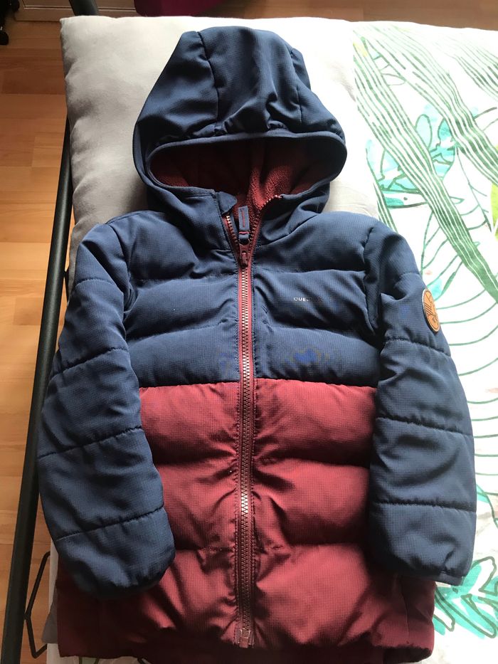 Manteau doudoune hiver bleu et bordeaux 4 ans