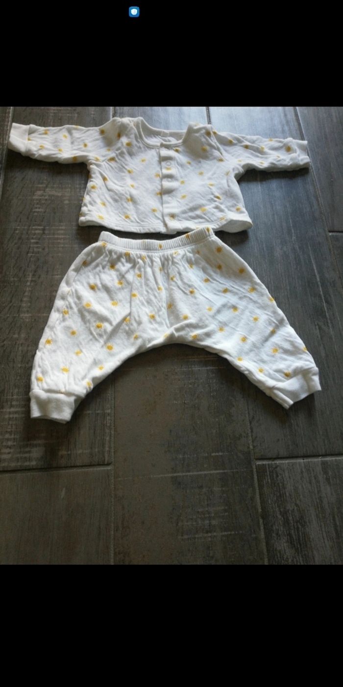 Ensemble pantalon et cardigan motif soleil Marque: petit bateau Taille: 3 mois Peu porté