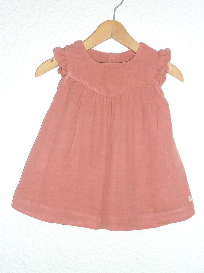 Robe en gaze de coton de marque PETIT BATEAU, en très bon état, couleur blush. Fermeture par pressions dans le dos.