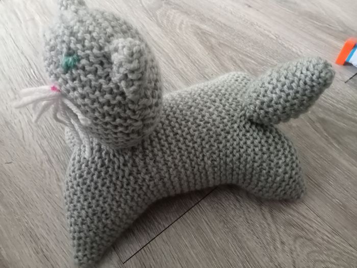 Jolie doudou chat , tricot , gris , très propre et bon etat