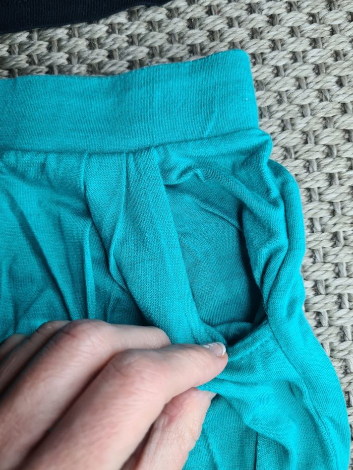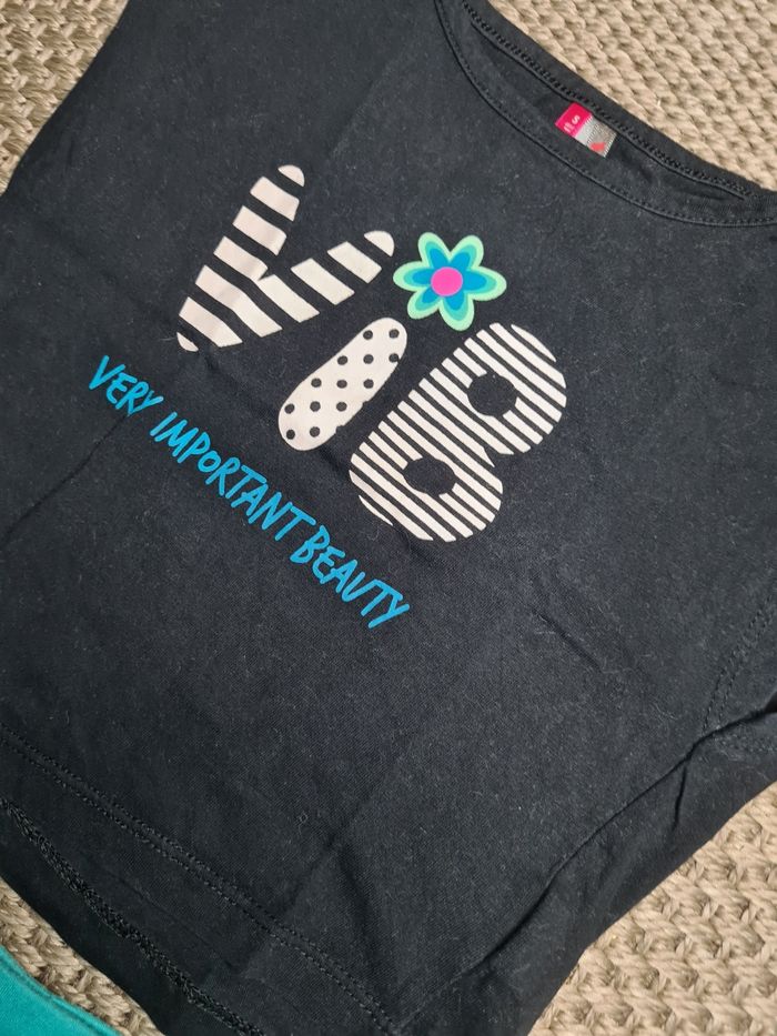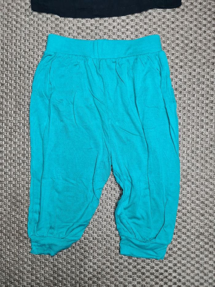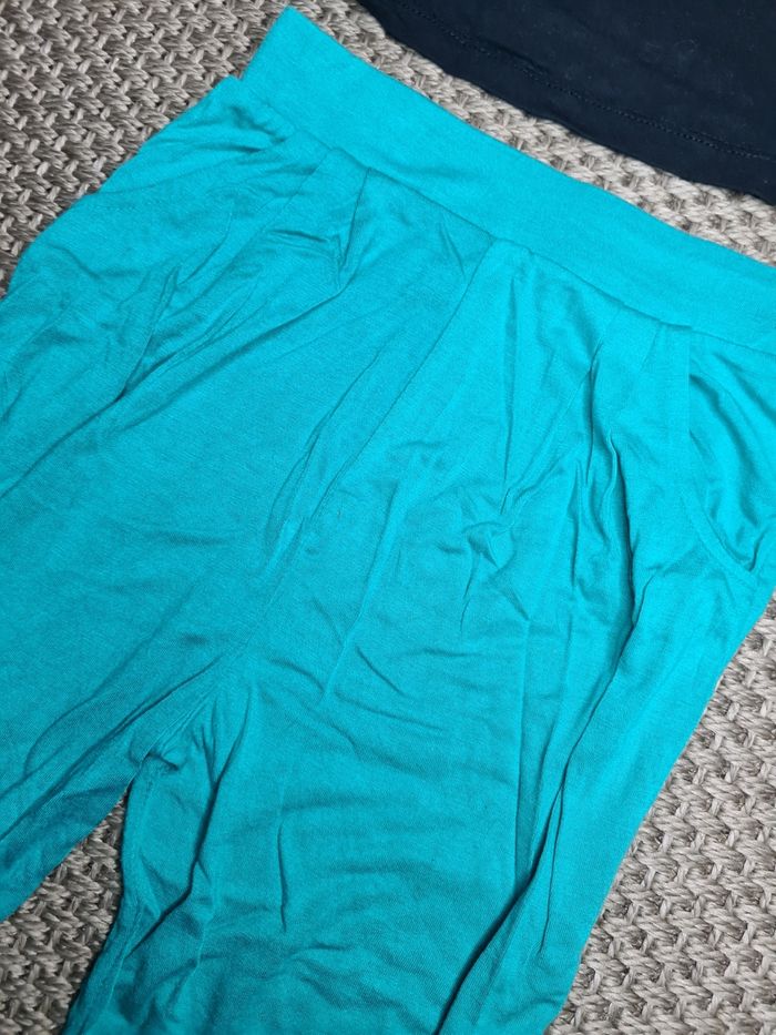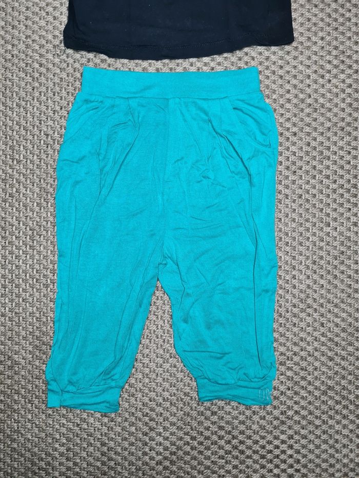 Ensemble t-shirt court manches courtes et pantacourt fluide. Motifs vib et bas bleu turquoise. Pas de défauts. Pas d'étiquettes sur le pantalon. Taille 5ans - marque orchestra.