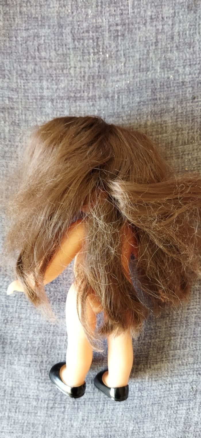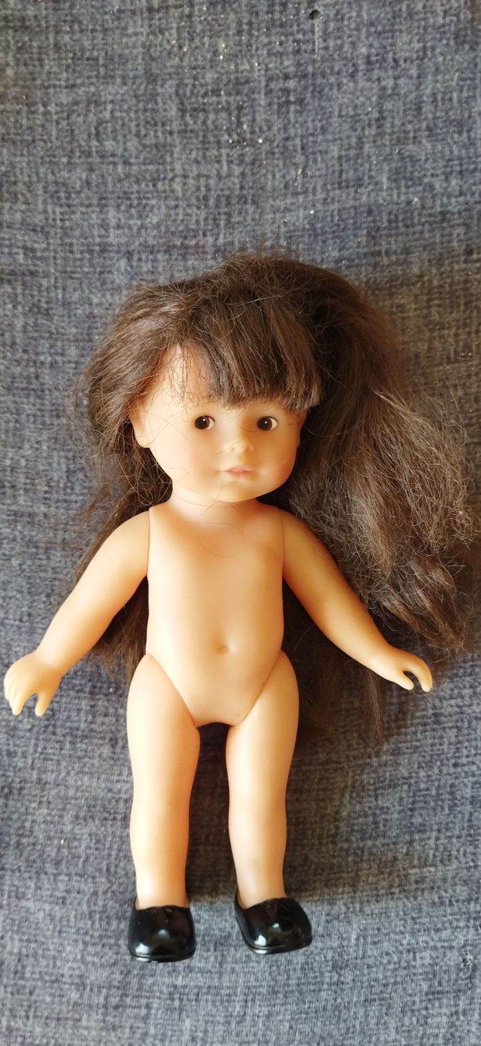 poupée corolle brune 20 cm Corps tout en vinyle, chaussures incluses Longs cheveux bruns,yeux fixes marrons Gravée dans le cou et sous la chaussure Elle mérite un bon shampooing 😅