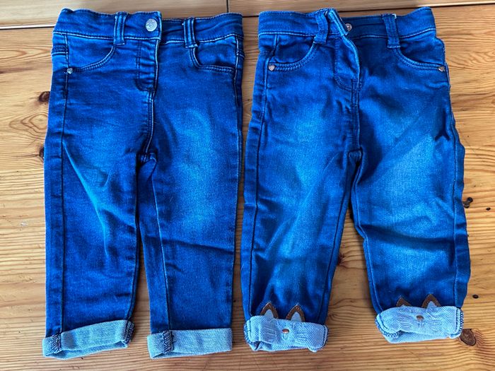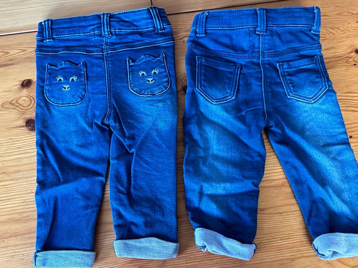 Lot de 2 jeans Le premier a des déco chat sur les poches arrières Le deuxième a des déco chat sur les ourlets