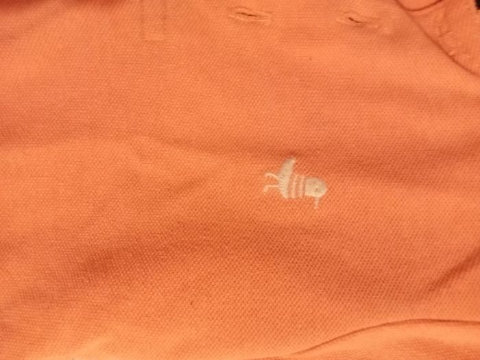 Polo orange , short bleu marine
