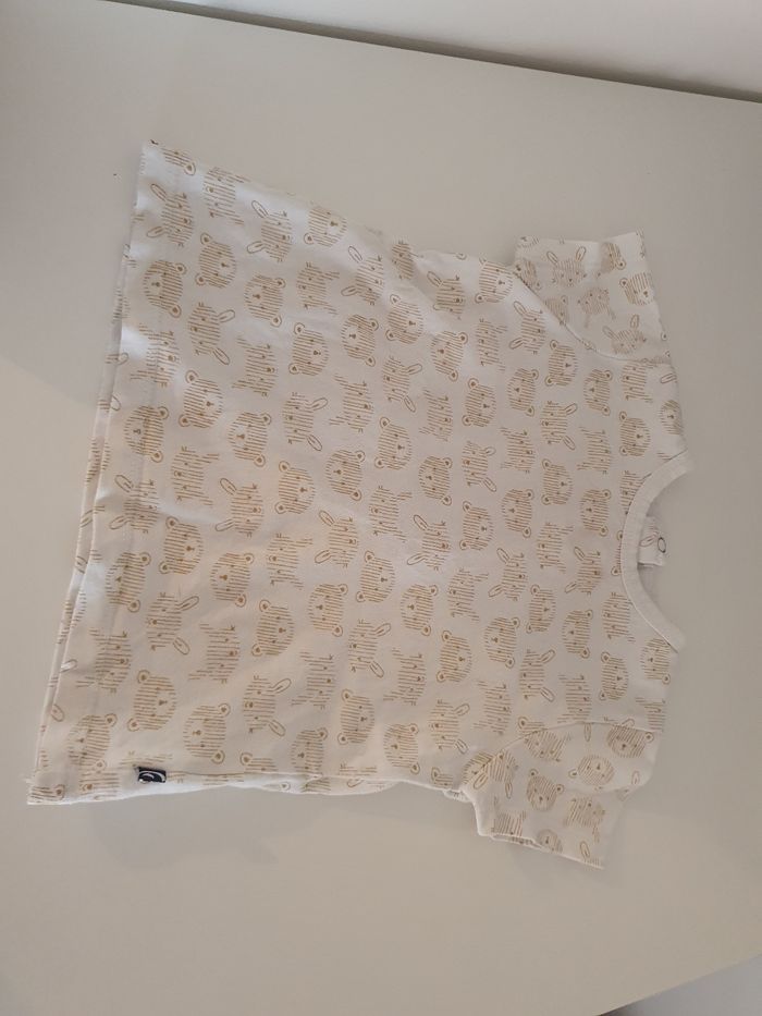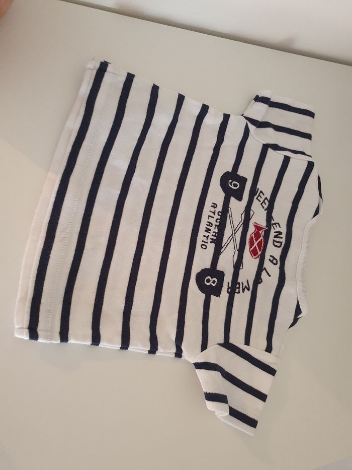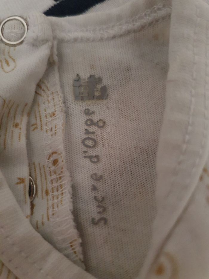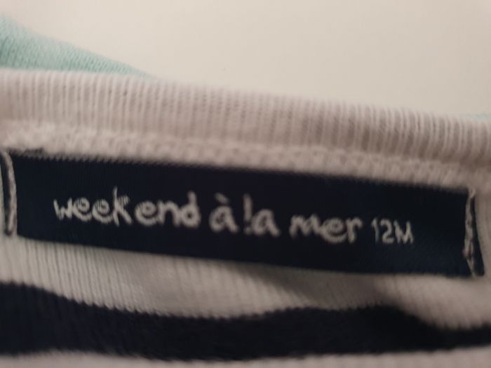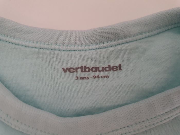 Le t-shirt bleu clair vertbaudet est en 3 ans mais il taille vraiment petit pour moi c'est plutôt du 12/18 mois. Week-end à la mer, sucre d'orge, grain de blé.